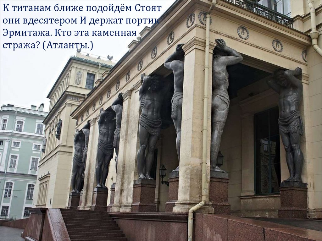 К титанам ближе подойдём Стоятони вдесятером И держат портик