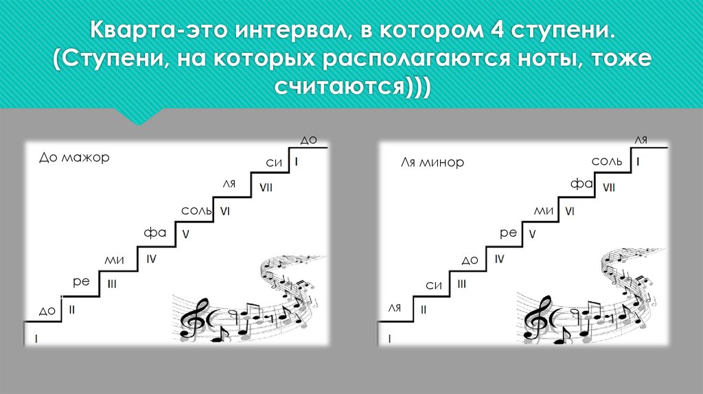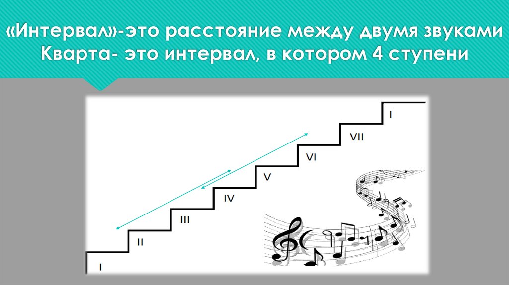 «Интервал»-это расстояние между двумя звукамиКварта- это интервал, в котором 4 ступени