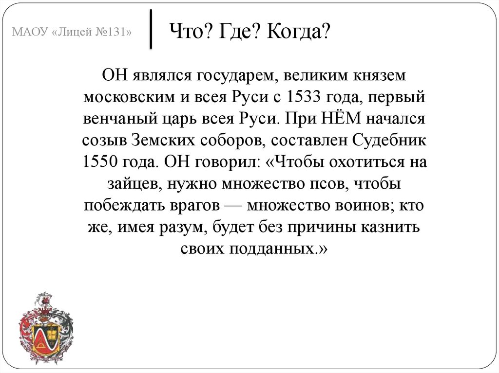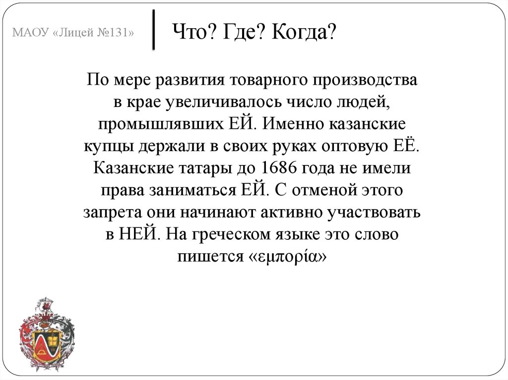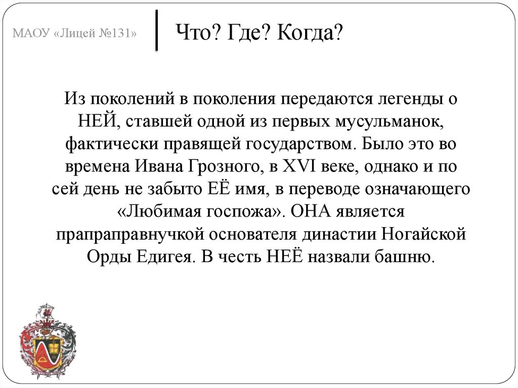 МАОУ «Лицей №131»Что? Где? Когда?