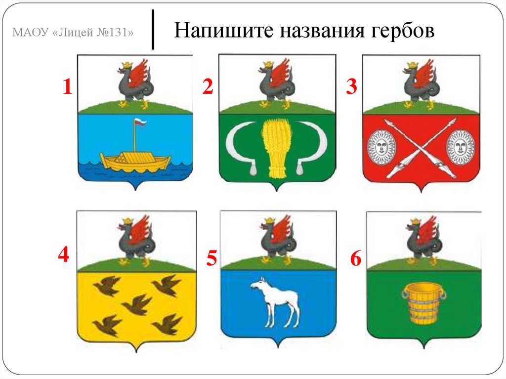 МАОУ «Лицей №131»Напишите названия гербов
