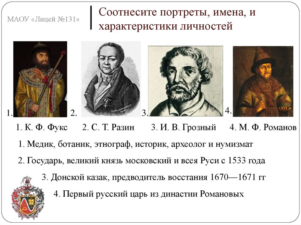 МАОУ «Лицей №131»Соотнесите портреты, имена, и