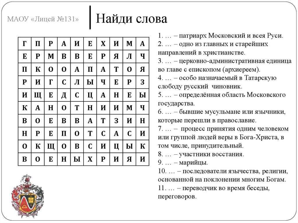 Найди словаМАОУ «Лицей №131»