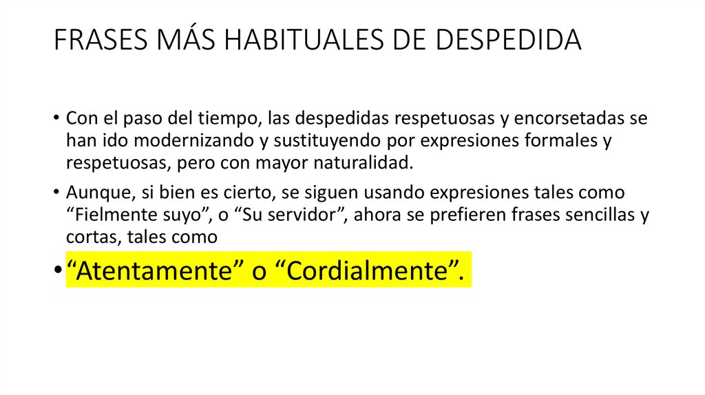FRASES MÁS HABITUALES DE DESPEDIDA• Con el paso del tiempo, las despedidas respetuosas y encorsetadas se
