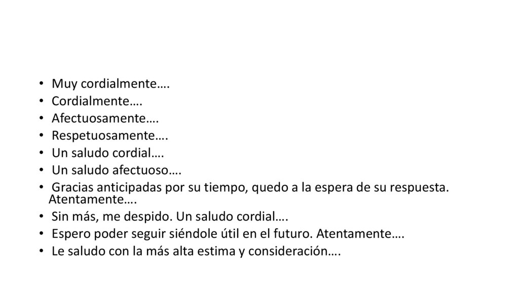 • Espero poder seguir siéndole útil en el futuro. Atentamente….