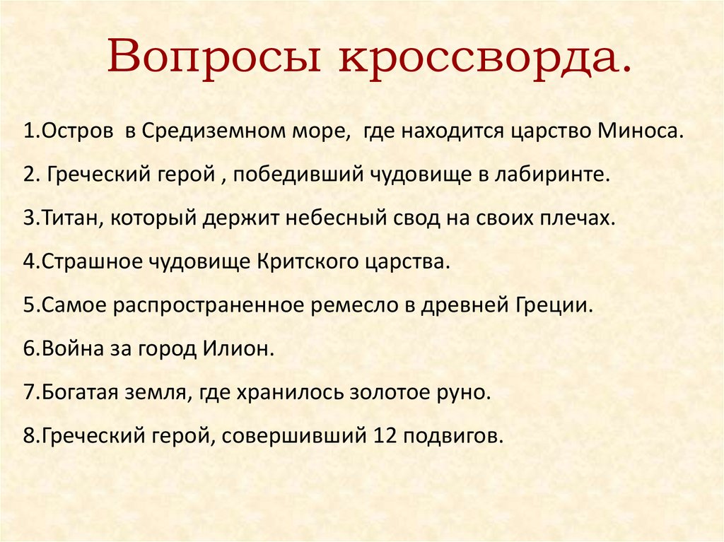 Вопросы кроссворда.1.Остров в Средиземном море, где находится царство Миноса.