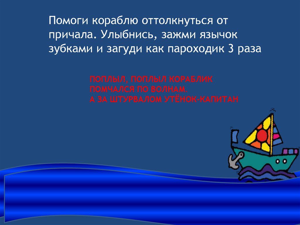 Помоги кораблю оттолкнуться отпричала. Улыбнись, зажми язычок