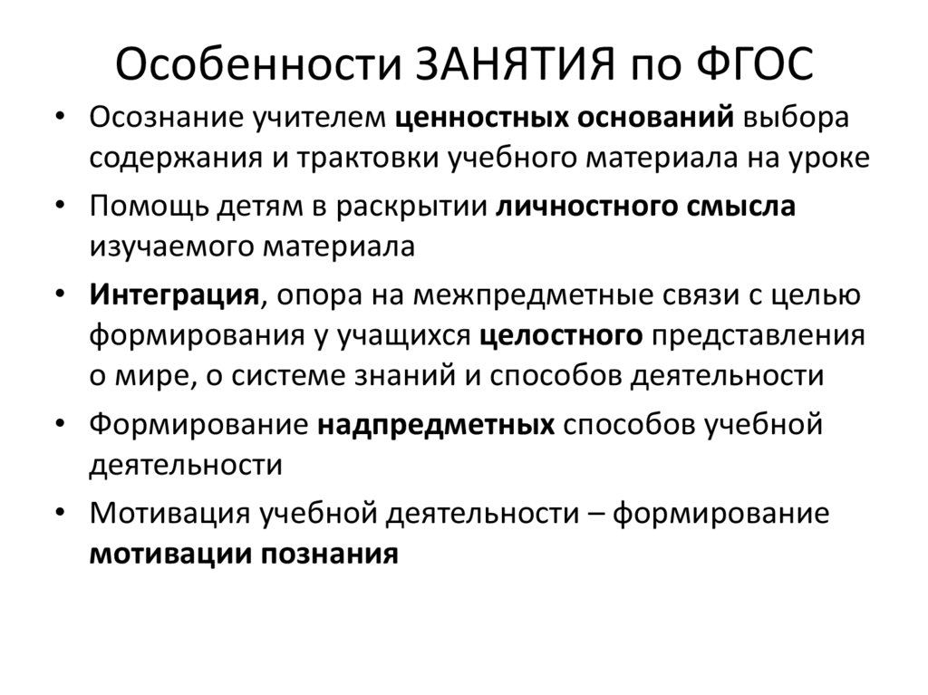 Особенности ЗАНЯТИЯ по ФГОС• Осознание учителем ценностных оснований выбора