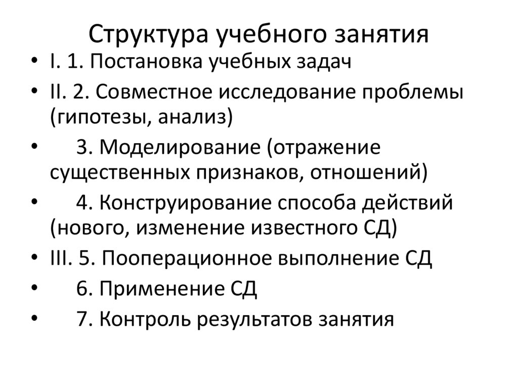 Структура учебного занятия• I. 1. Постановка учебных задач