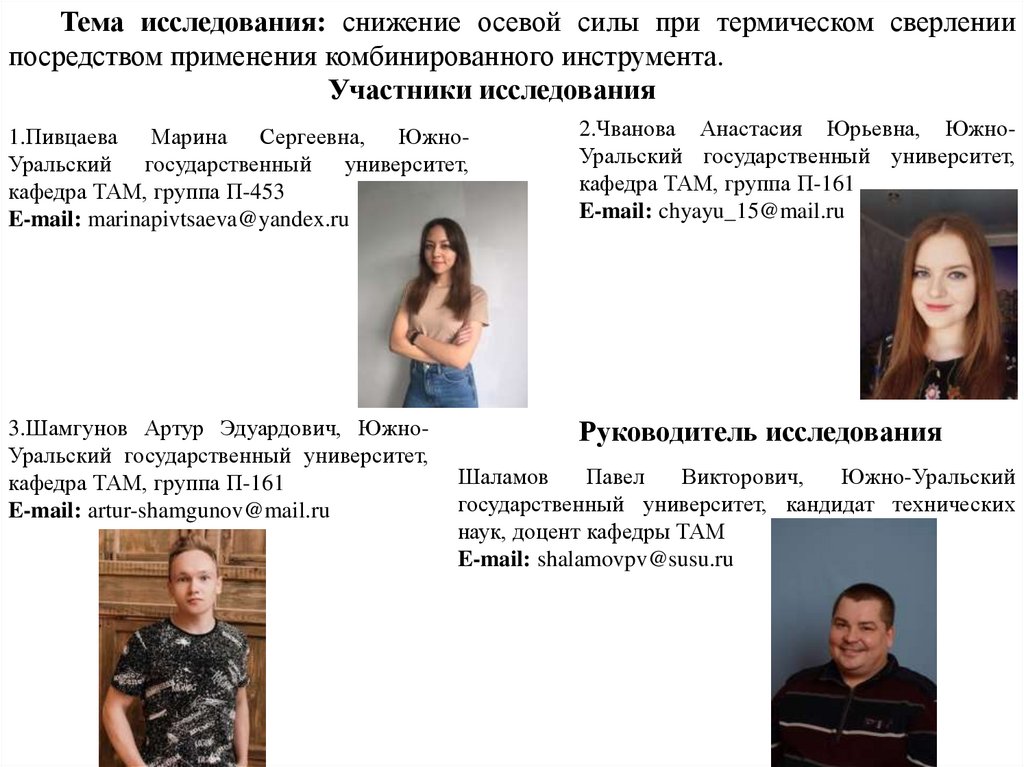 Тема исследования: снижение осевой силы при термическом сверлениипосредством применения комбинированного инструмента.