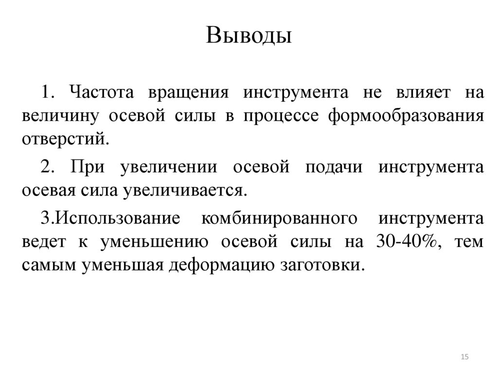 Выводы1. Частота вращения инструмента не влияет на