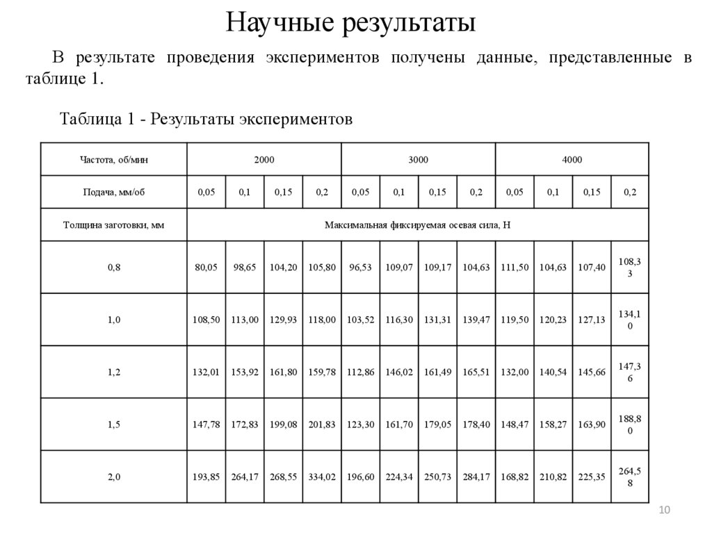 Была исследована зависимость максимальной осевой силы от частоты вращенияинструмента. В качестве исходных данных принимаются: толщина заготовки и частота вращения