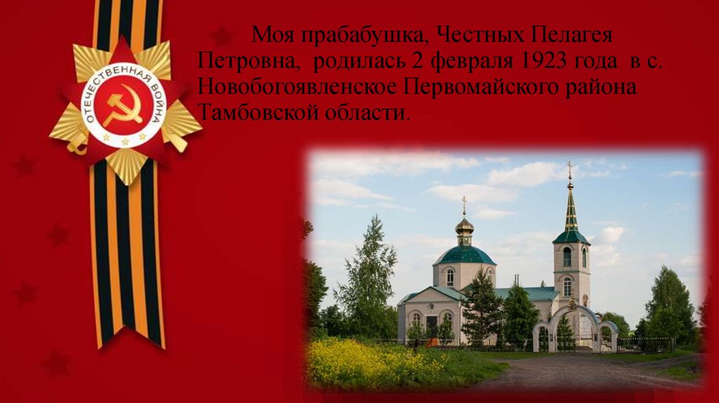 Моя прабабушка, Честных ПелагеяПетровна, родилась 2 февраля 1923 года в с.