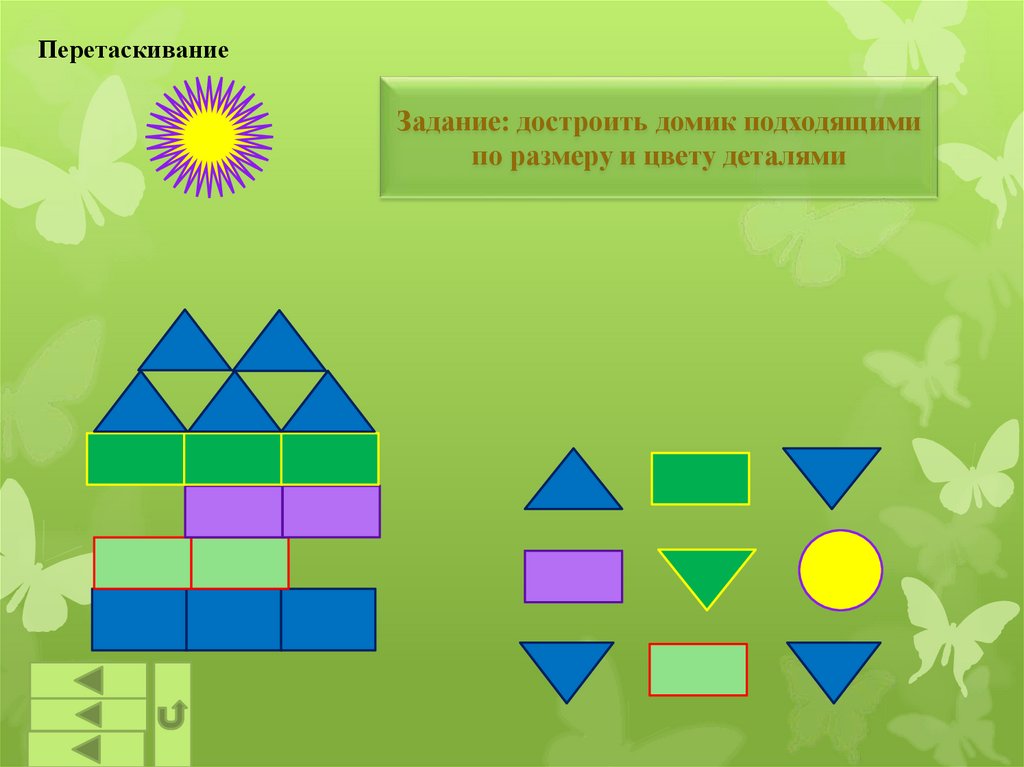 ПеретаскиваниеЗадание: достроить домик подходящими