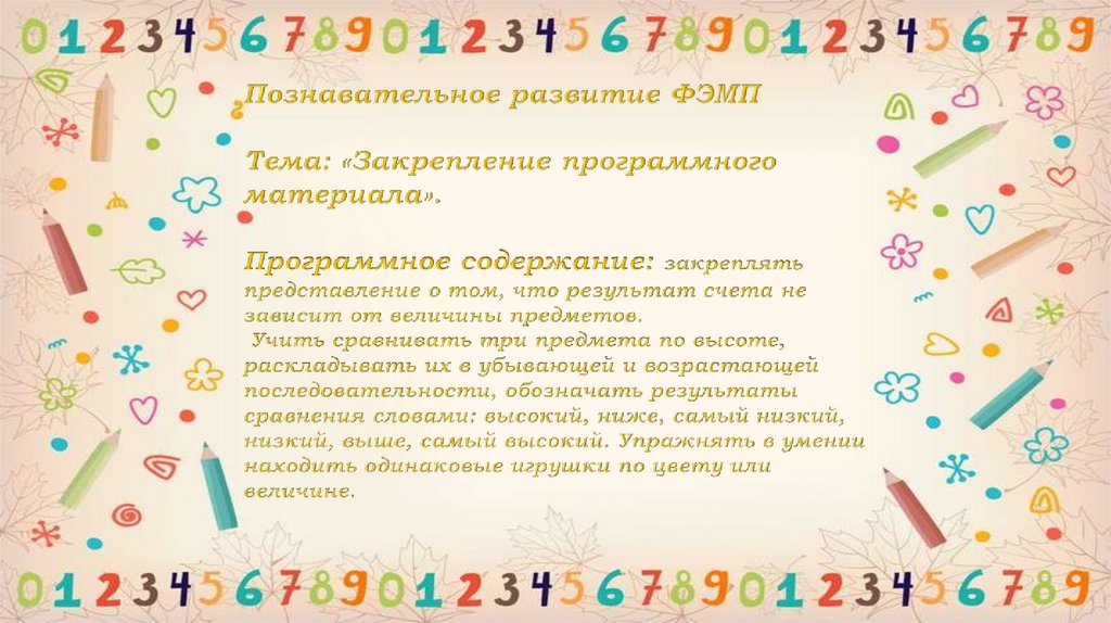 Познавательное развитие ФЭМП. Закрепление программного материала