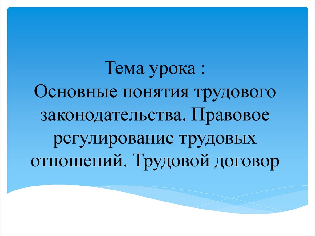 Основные понятия трудового законодательства. Правовое регулирование трудовых отношений. Трудовой договор