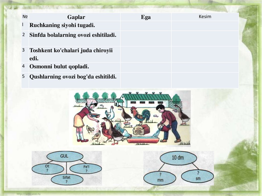 5 Qushlarning ovozi bog'da eshitildi.