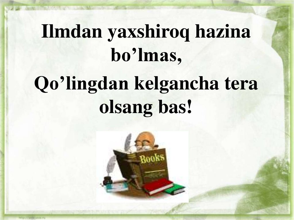 Ilmdan yaxshiroq hazinabo’lmas,
