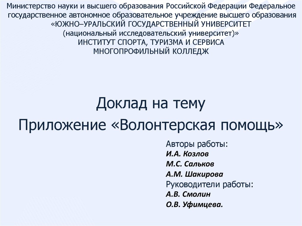 «ЮЖНО–УРАЛЬСКИЙ ГОСУДАРСТВЕННЫЙ УНИВЕРСИТЕТ