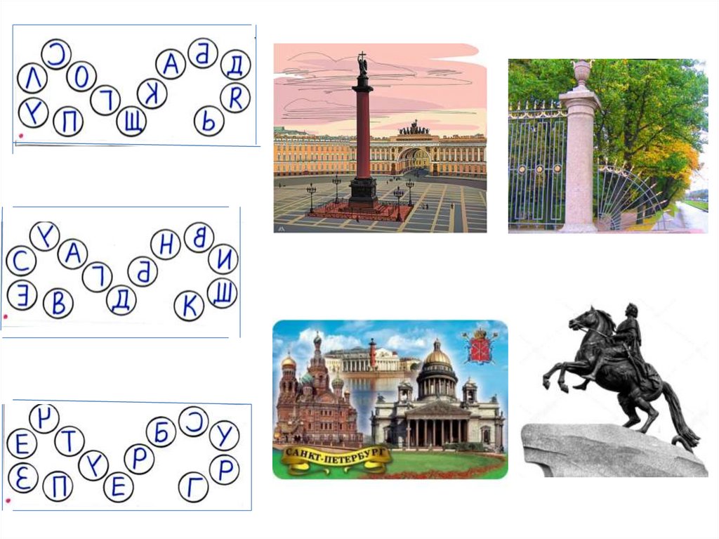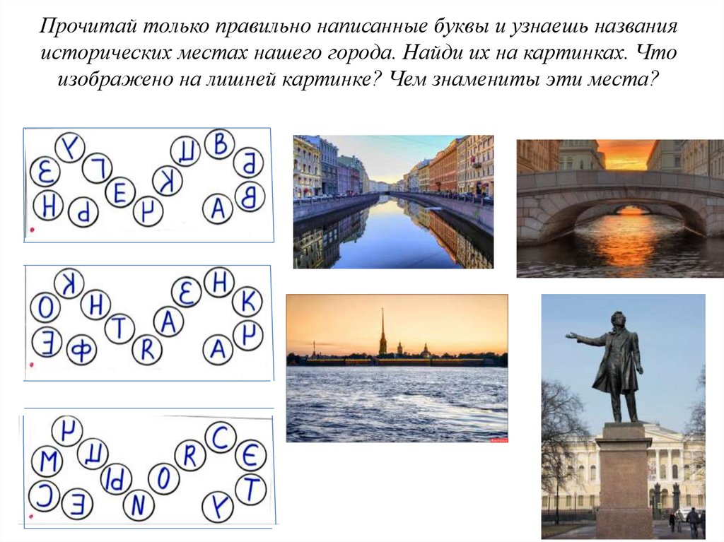 Прочитай только правильно написанные буквы и узнаешь названияисторических местах нашего города. Найди их на картинках. Что
