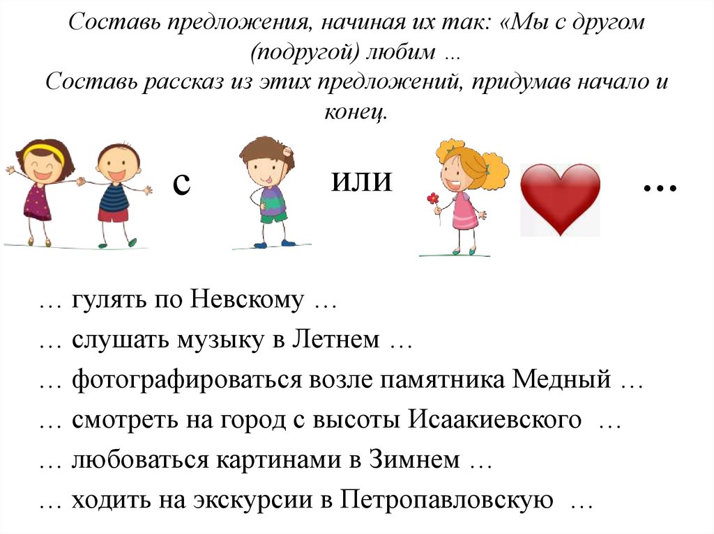 Составь предложения, начиная их так: «Мы с другом(подругой) любим …