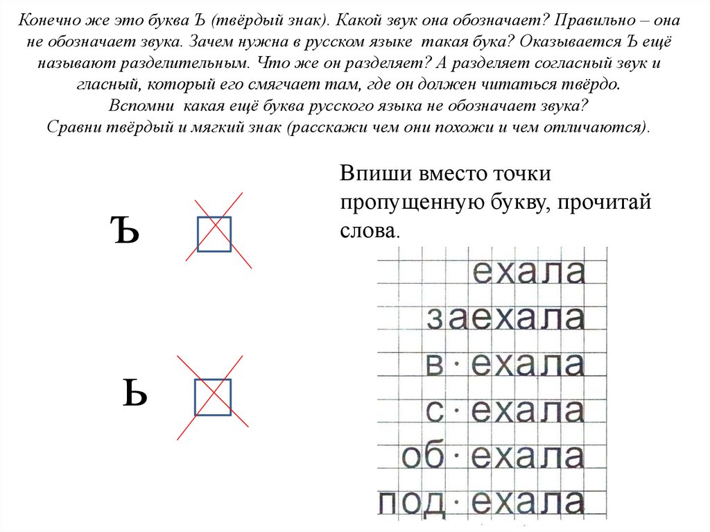 Сравни твёрдый и мягкий знак (расскажи чем они похожи и чем отличаются).