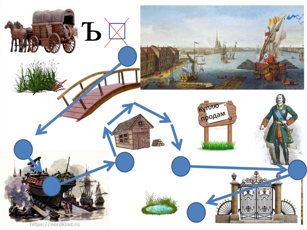 2. Используя, названные взрослым слова-действия, определи путь Петра в