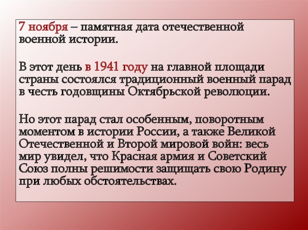 7 ноября – памятная дата отечественнойвоенной истории.