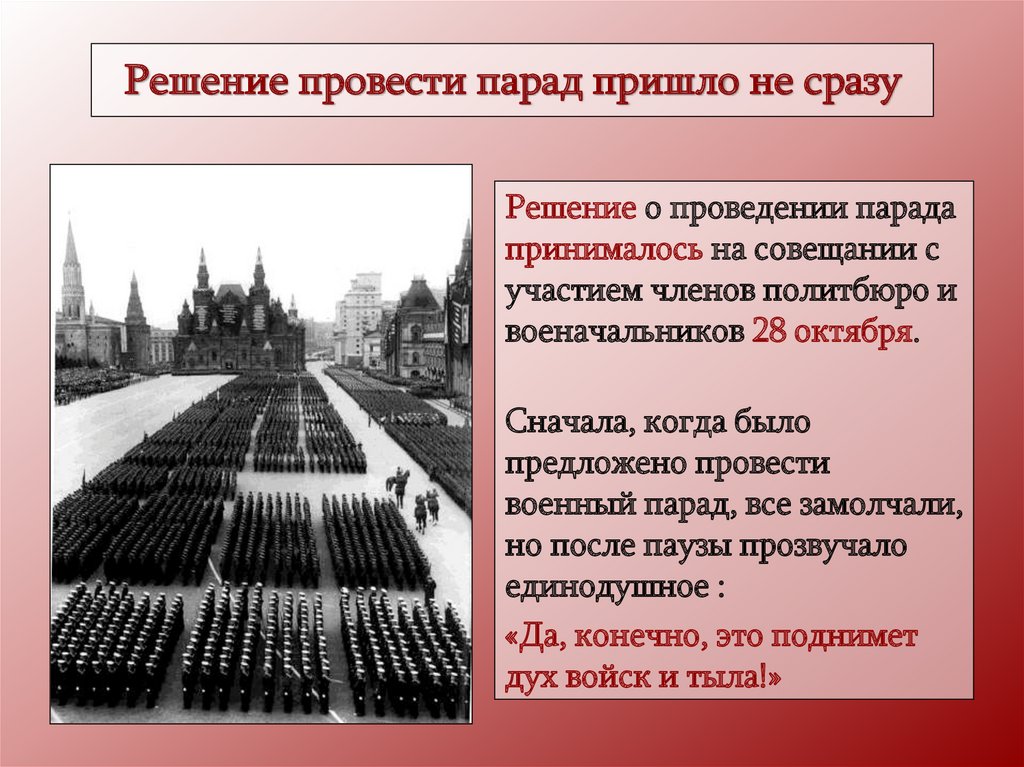 Решение провести парад пришло не сразуРешение о проведении парада