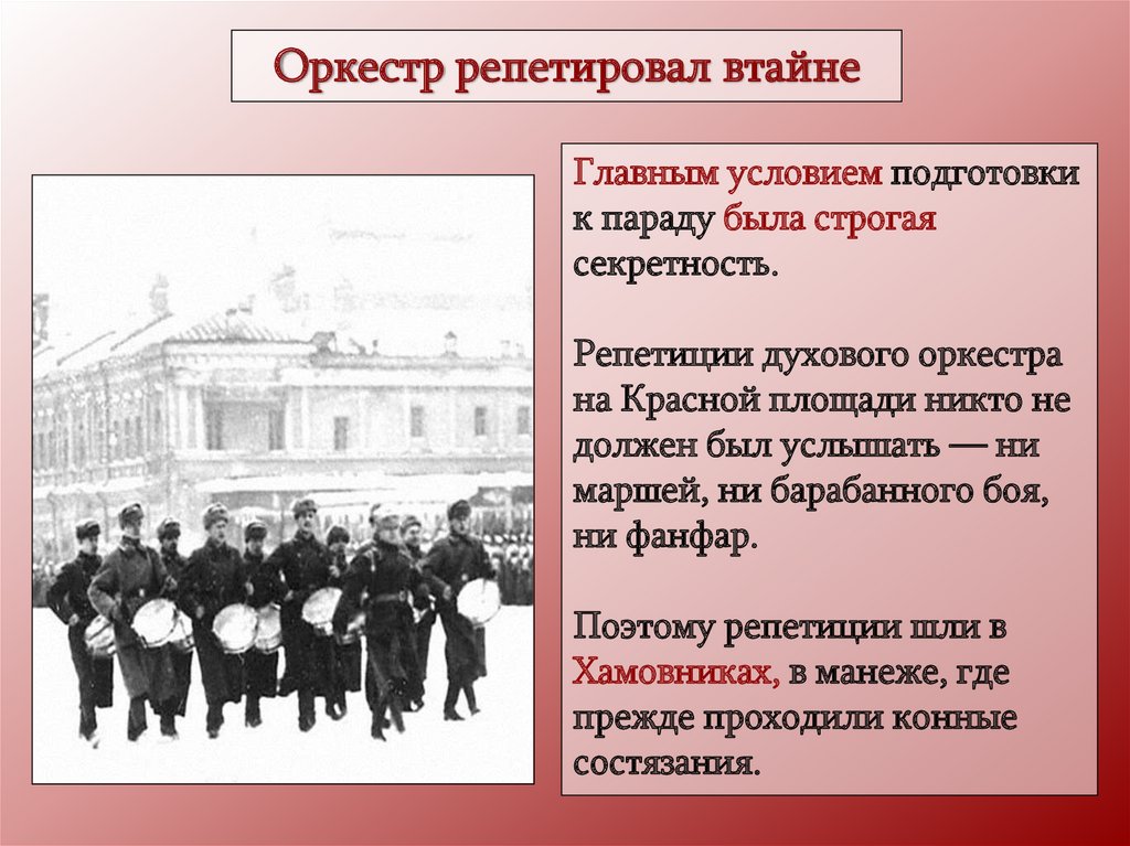 Оркестр репетировал втайнеГлавным условием подготовки