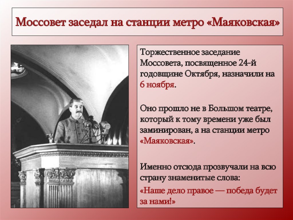 Моссовет заседал на станции метро «Маяковская»Торжественное заседание