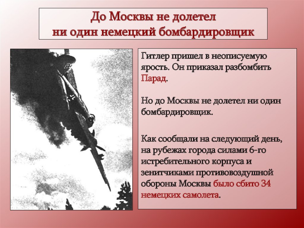 До Москвы не долетелни один немецкий бомбардировщик