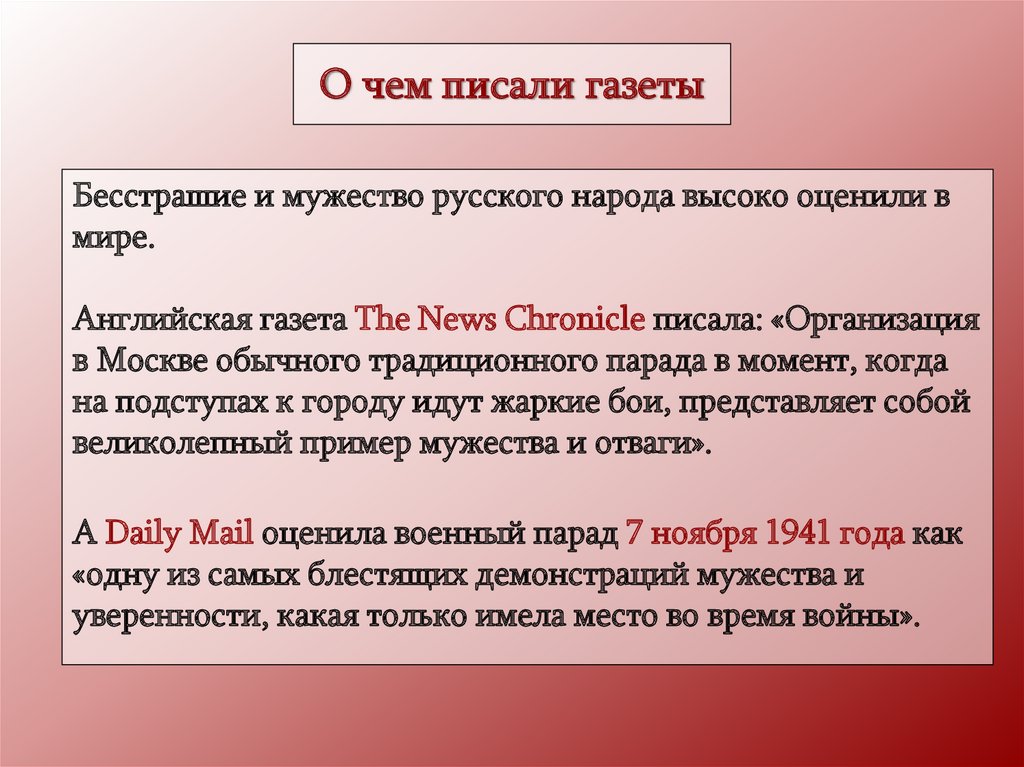О чем писали газетыБесстрашие и мужество русского народа высоко оценили в