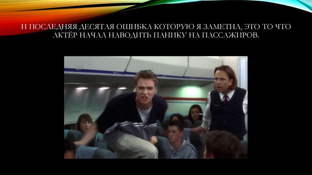И ПОСЛЕДНЯЯ ДЕСЯТАЯ ОШИБКА КОТОРУЮ Я ЗАМЕТИЛ, ЭТО ТО ЧТОАКТЁР НАЧАЛ НАВОДИТЬ ПАНИКУ НА ПАССАЖИРОВ.