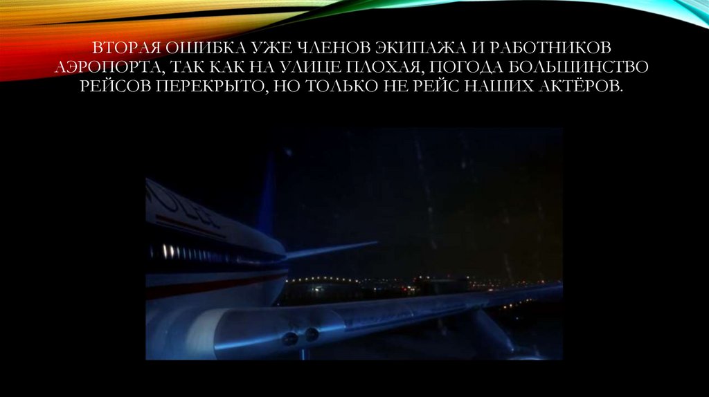 ВТОРАЯ ОШИБКА УЖЕ ЧЛЕНОВ ЭКИПАЖА И РАБОТНИКОВАЭРОПОРТА, ТАК КАК НА УЛИЦЕ ПЛОХАЯ, ПОГОДА БОЛЬШИНСТВО