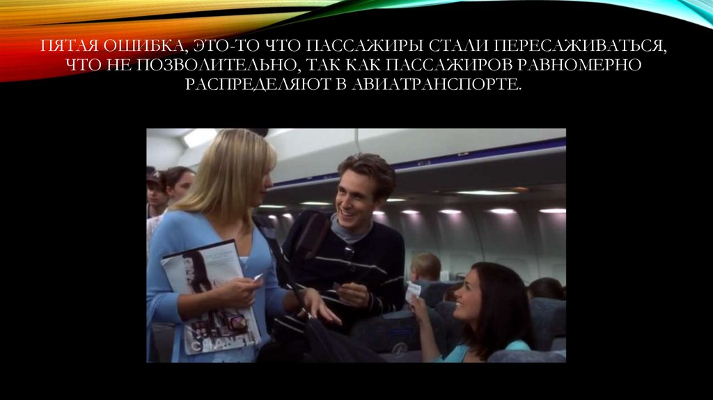 ПЯТАЯ ОШИБКА, ЭТО-ТО ЧТО ПАССАЖИРЫ СТАЛИ ПЕРЕСАЖИВАТЬСЯ,ЧТО НЕ ПОЗВОЛИТЕЛЬНО, ТАК КАК ПАССАЖИРОВ РАВНОМЕРНО