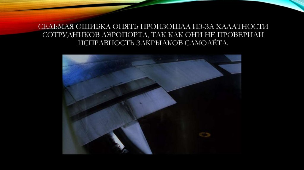 СЕДЬМАЯ ОШИБКА ОПЯТЬ ПРОИЗОШЛА ИЗ-ЗА ХАЛАТНОСТИСОТРУДНИКОВ АЭРОПОРТА, ТАК КАК ОНИ НЕ ПРОВЕРИЛИ