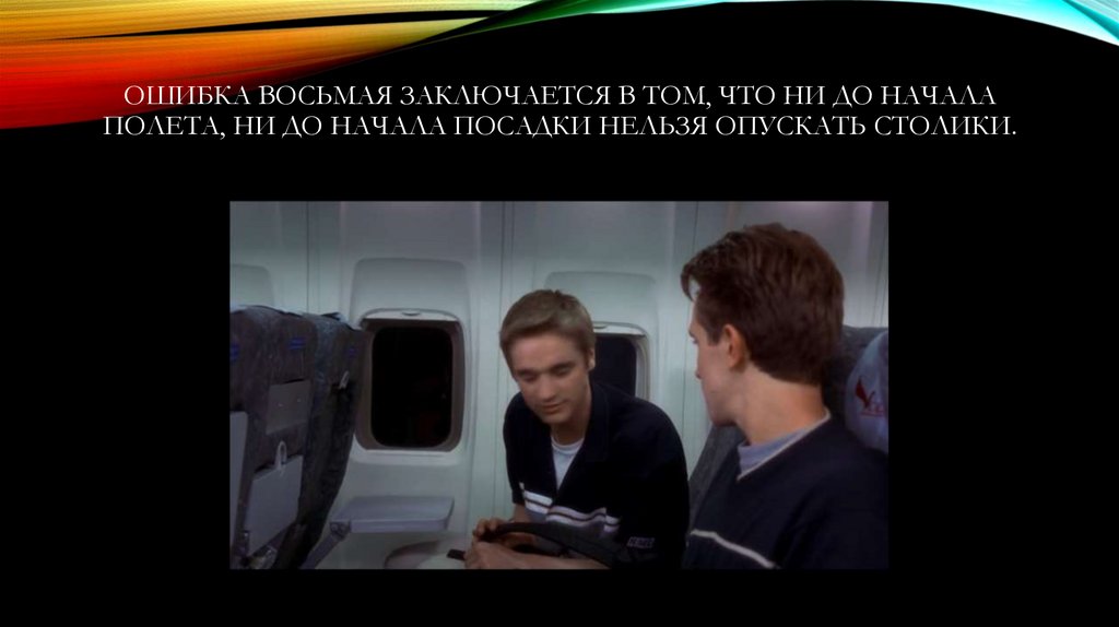 ОШИБКА ВОСЬМАЯ ЗАКЛЮЧАЕТСЯ В ТОМ, ЧТО НИ ДО НАЧАЛАПОЛЕТА, НИ ДО НАЧАЛА ПОСАДКИ НЕЛЬЗЯ ОПУСКАТЬ СТОЛИКИ.