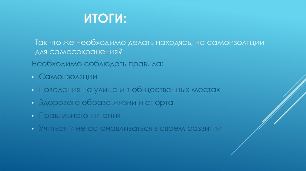 ИТОГИ:Так что же необходимо делать находясь, на самоизоляции