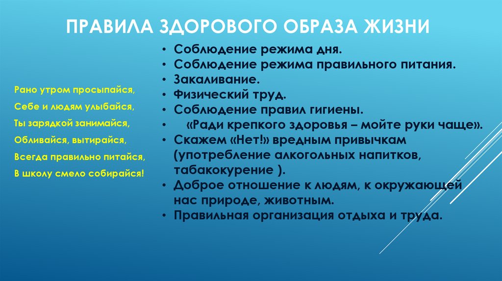 ПРАВИЛА ЗДОРОВОГО ОБРАЗА ЖИЗНИРано утром просыпайся,