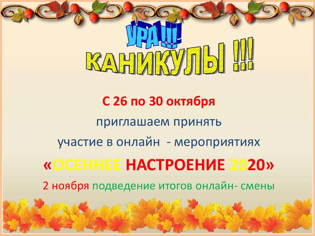 С 26 по 30 октябряприглашаем принять