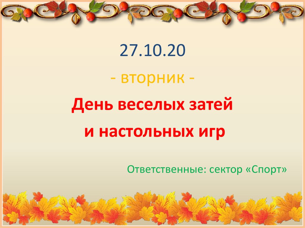 27.10.20- вторник День веселых затей