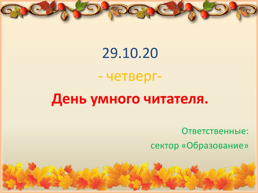 29.10.20- четвергДень умного читателя.