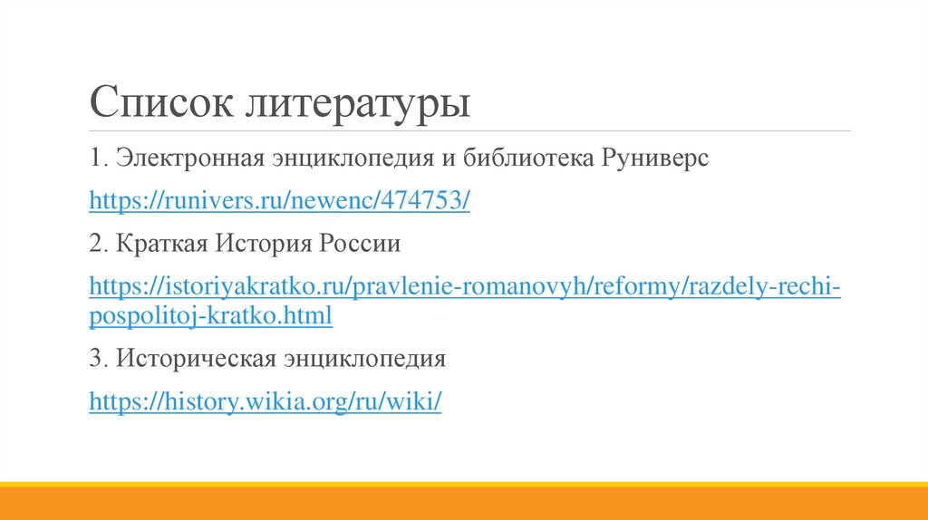 Список литературы1. Электронная энциклопедия и библиотека Руниверс