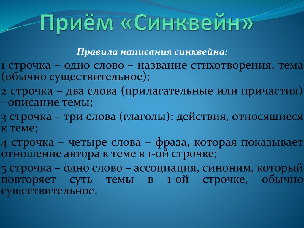 Правила написания синквейна:1 строчка – одно слово – название стихотворения, тема