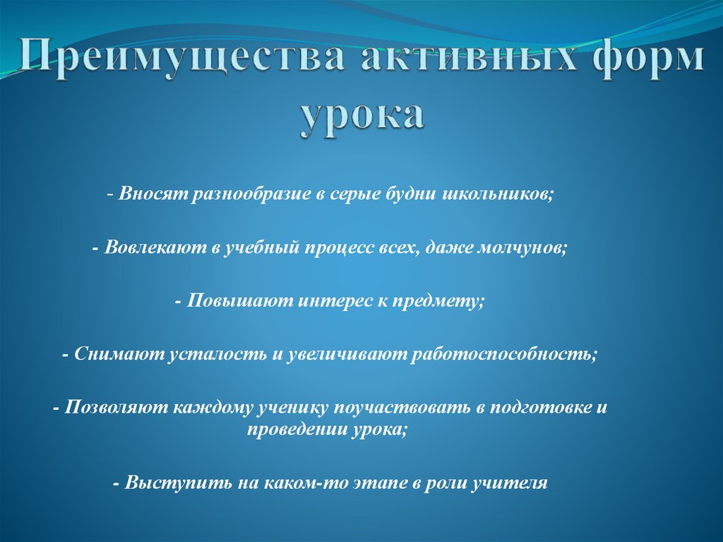 - Вносят разнообразие в серые будни школьников;- Вовлекают в учебный процесс всех, даже молчунов;