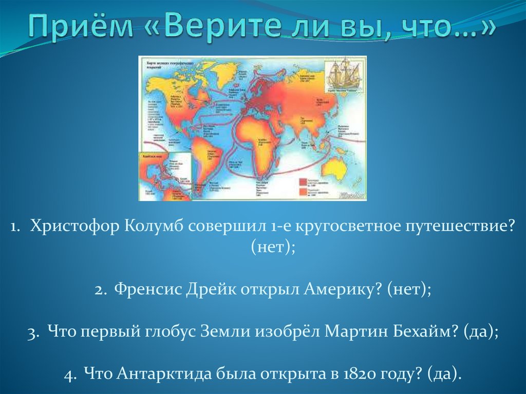 2. Френсис Дрейк открыл Америку? (нет);