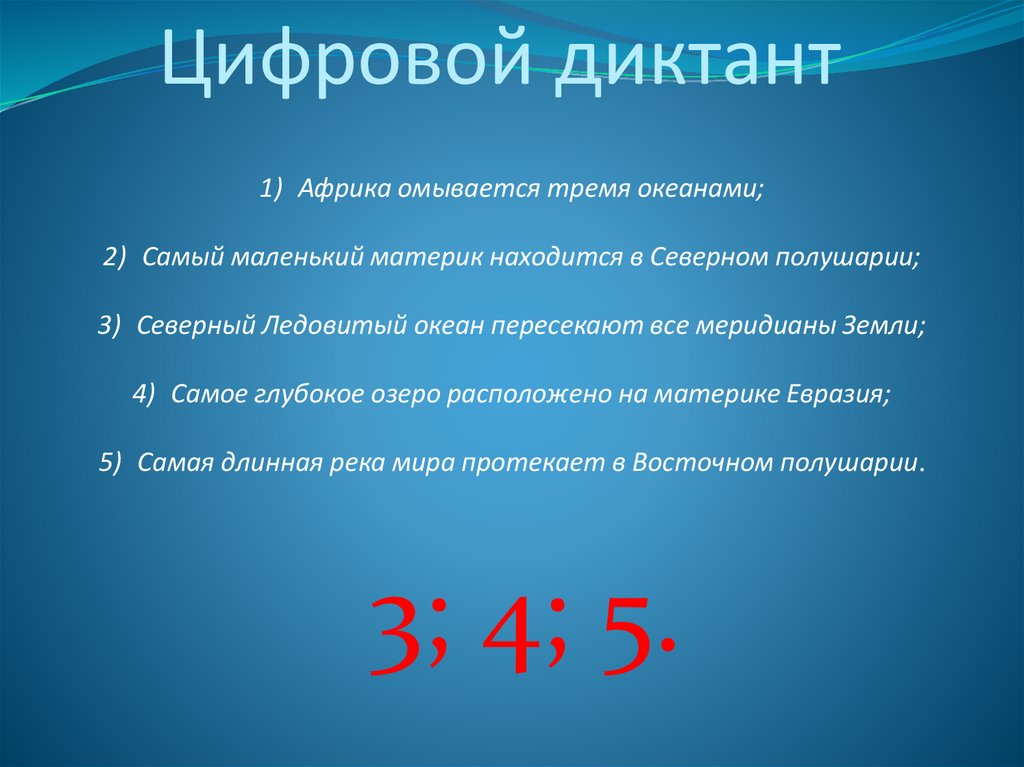 Цифровой диктант1) Африка омывается тремя океанами;