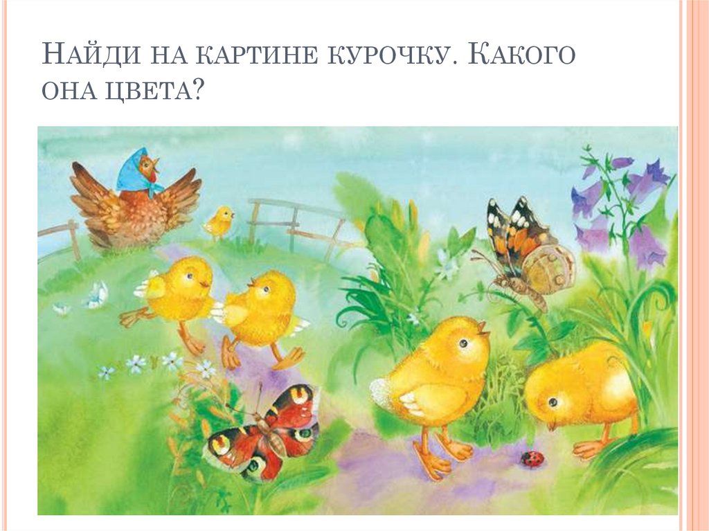 НАЙДИ НА КАРТИНЕ КУРОЧКУ. КАКОГООНА ЦВЕТА?