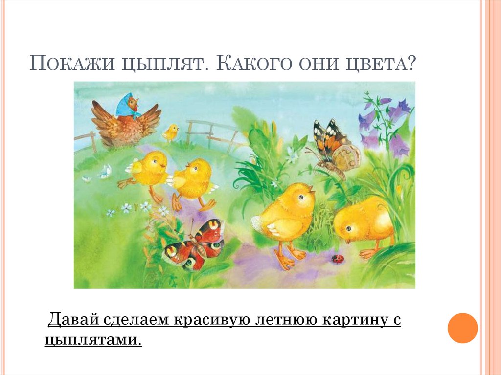 ПОКАЖИ ЦЫПЛЯТ. КАКОГО ОНИ ЦВЕТА?Давай сделаем красивую летнюю картину с