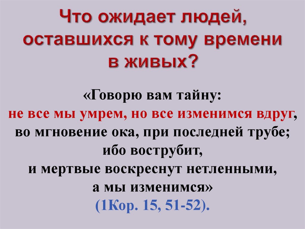 «Говорю вам тайну:не все мы умрем, но все изменимся вдруг,